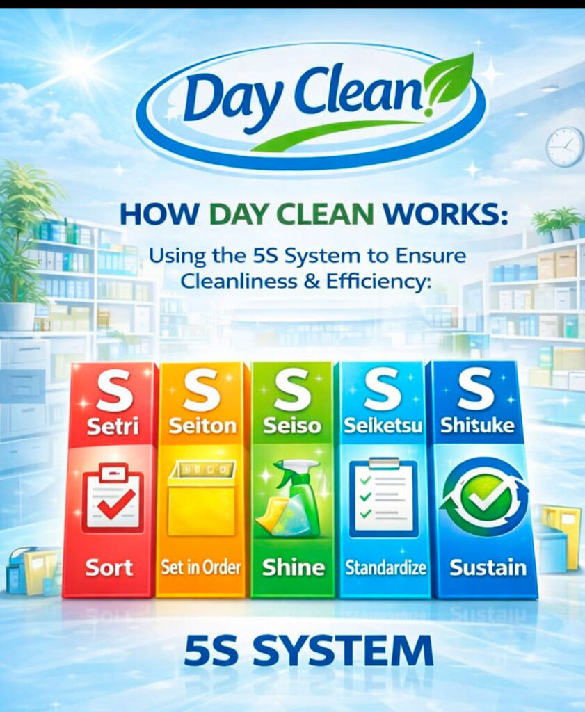 At Day Clean, we work with a professional cleaning system based on the Japanese 5S method, a technique focused on order, efficiency, and lasting cleanliness in every space.